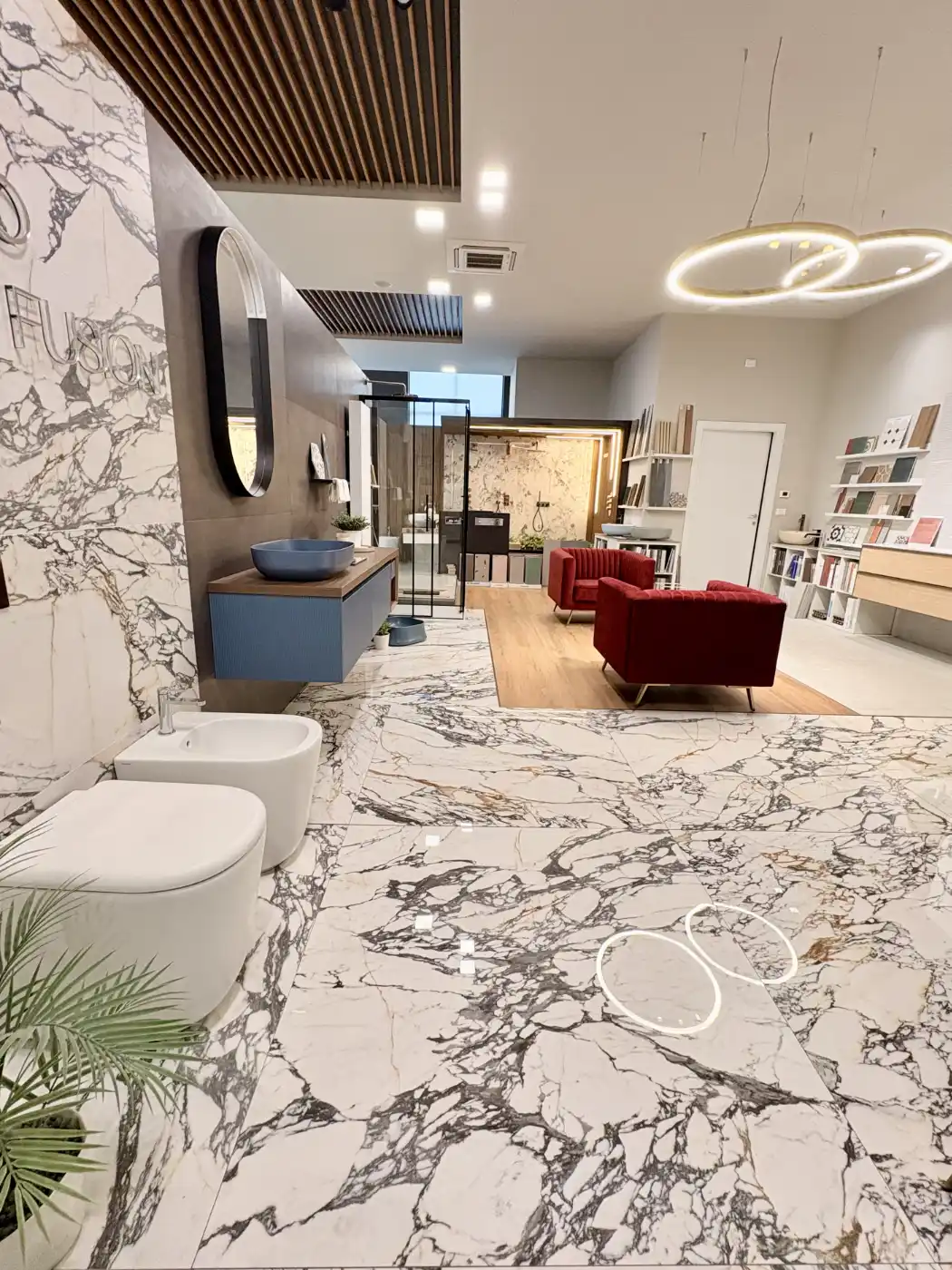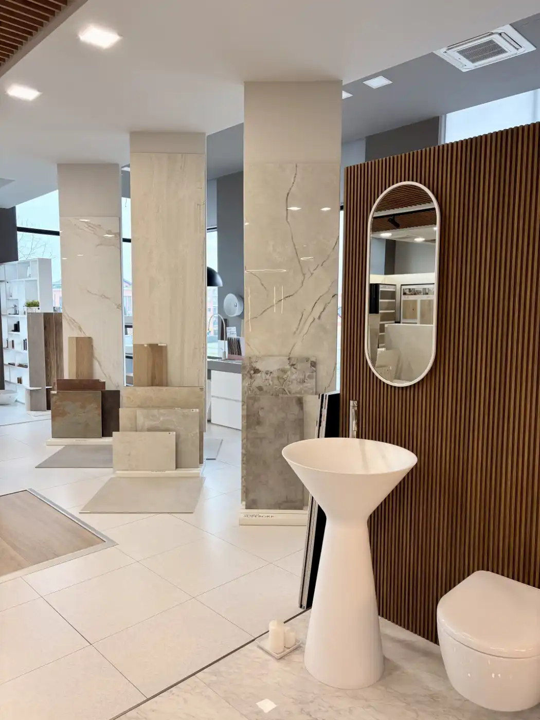 Il cliente può anche visitare il nostro showroom completo di tutti i prodotti della gamma e vivere un’esperienza immersiva compresa di alcune dimostrazioni sulle applicazioni di gres, rivestimenti e parquet.